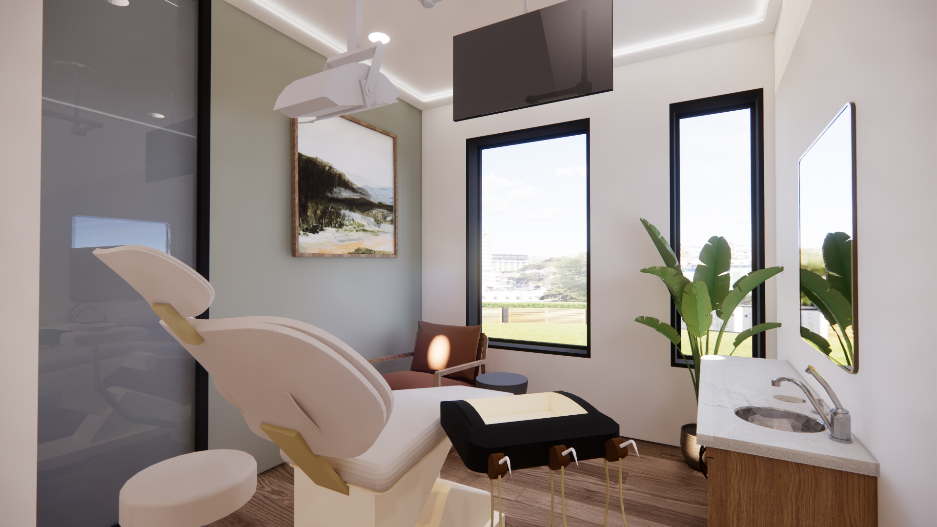 Located in Fort Worth, TX, this practice is designed to elevate both patient experience and staff efficiency through clean lines, natural light, and a calming material palette. The space balances a professional atmosphere with the comfort of a hospitality setting, featuring a welcoming lobby and intuitive circulation. Operatory layouts were optimized for functionality while maintaining privacy and a sense of openness. Soft textures, warm wood tones, and diffused lighting contribute to a serene environment that puts patients at ease. Behind the scenes, support areas were planned for maximum workflow efficiency, from sterilization zones to staff lounges. The design reflects the client’s commitment to innovation, precision, and care—creating a space that not only performs well but reinforces the brand’s identity as a forward-thinking, patient-centered practice rooted in trust and excellence.
